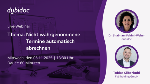 In diesem Webinar zeigen wir Ihnen, wie Sie durch unsere innovative Partnerschaft mit PVS holding, ab sofort auf eine smarte und transparente Lösung für nicht wahrgenommene Termine zurückgreifen können.